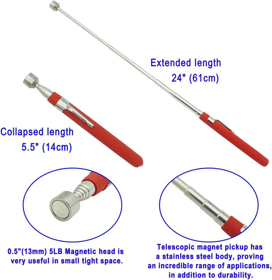 Telescopic Magnetic Pickup Tool,5Lb Magnet Stick,24" Extendable Magnet with Pocket Clip